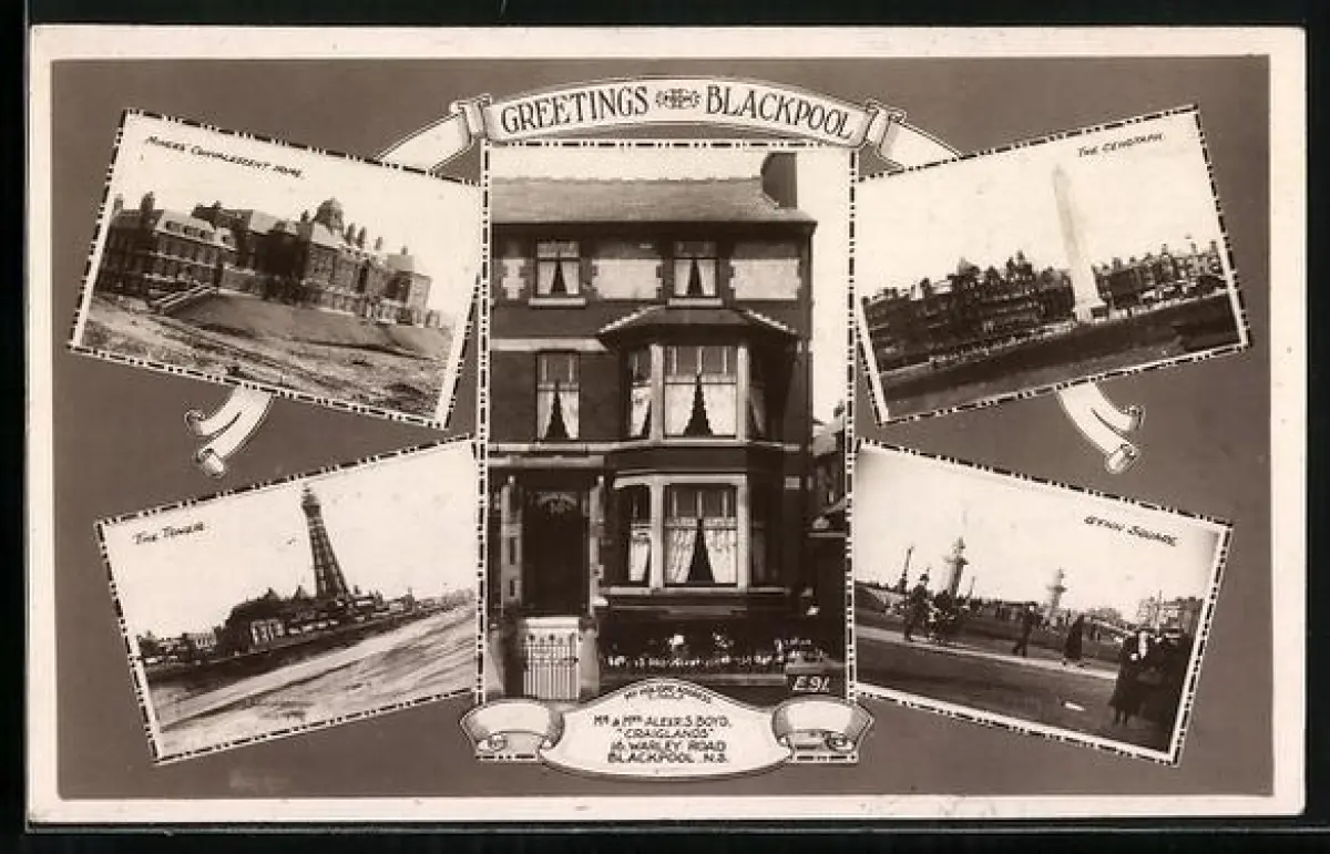AK Blackpool, The Tower, Miner`s Convalescent Home, The Cenotaph
