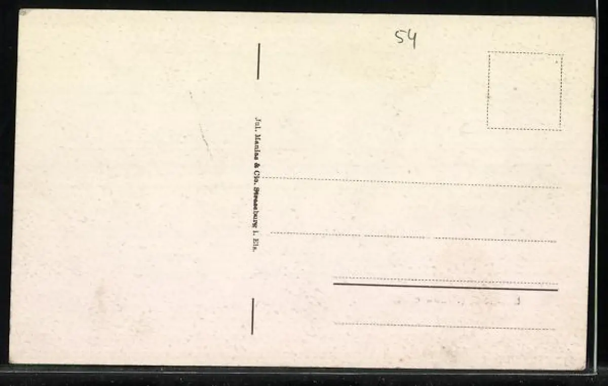 Personenbezogene Daten auf der Rückseite der Karte wurden durch blauen Textmarker unkenntlich gemacht. Die blauen Stellen sind auf die Vorderseite durchgeweicht und wirken sich negativ auf das Postkartenfoto aus