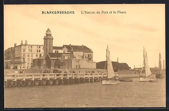 AK Blankenberghe, L`Entrée du Port et le Phare