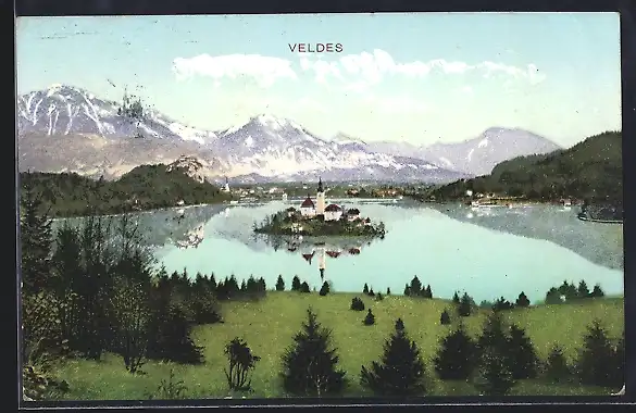 AK Bled / Veldes, Ansicht der Insel mit Kirche
