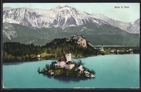 AK Bled in Stol, Totalansicht mit Insel