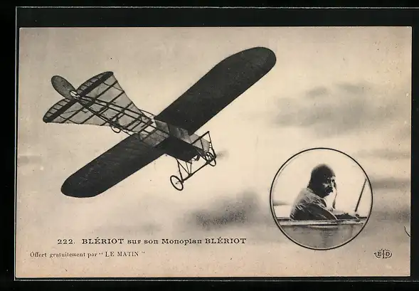 AK Blériot sur son Monoplan Blériot, Eindecker-Flugzeug