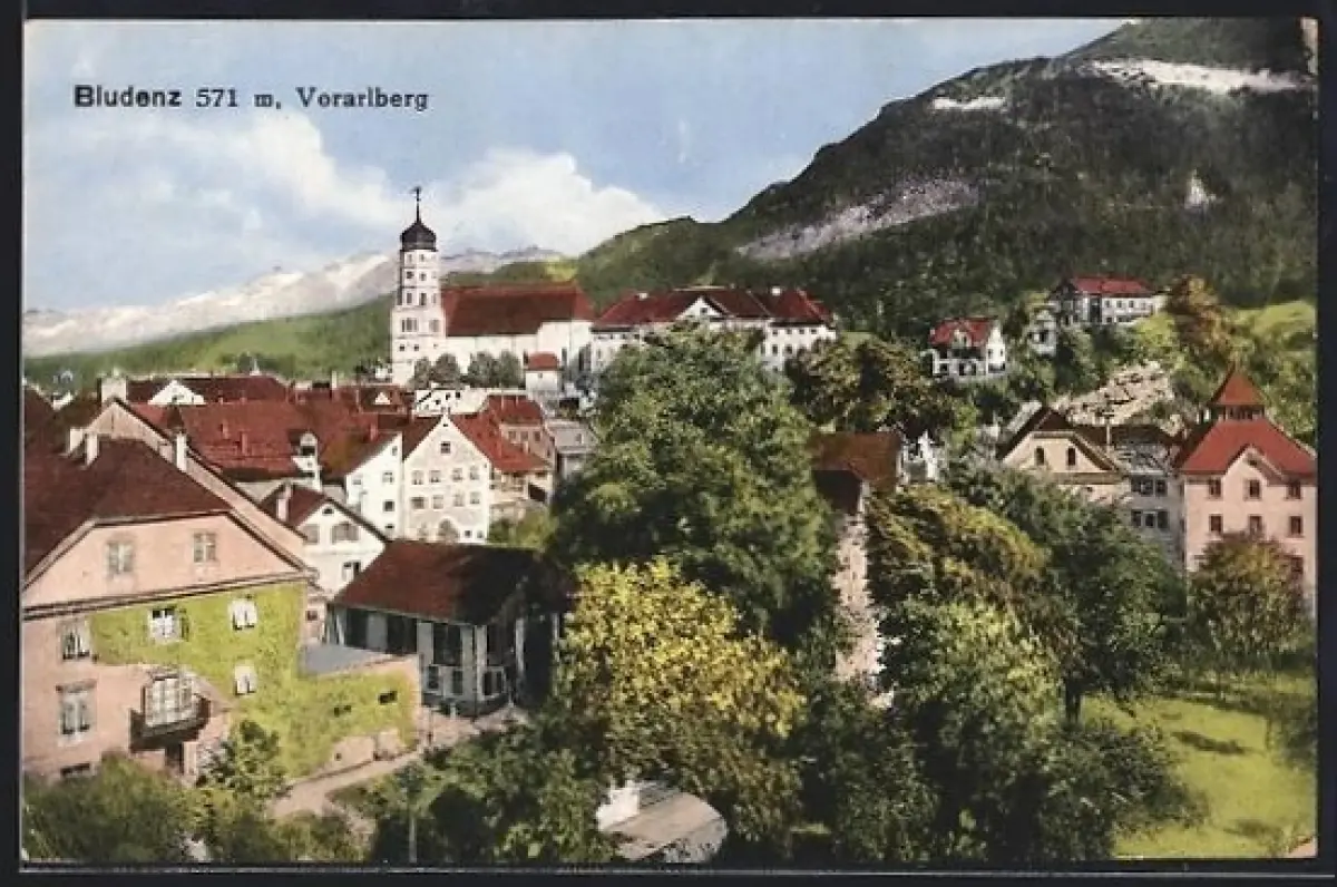 AK Bludenz, Ortsansicht mit Kirche