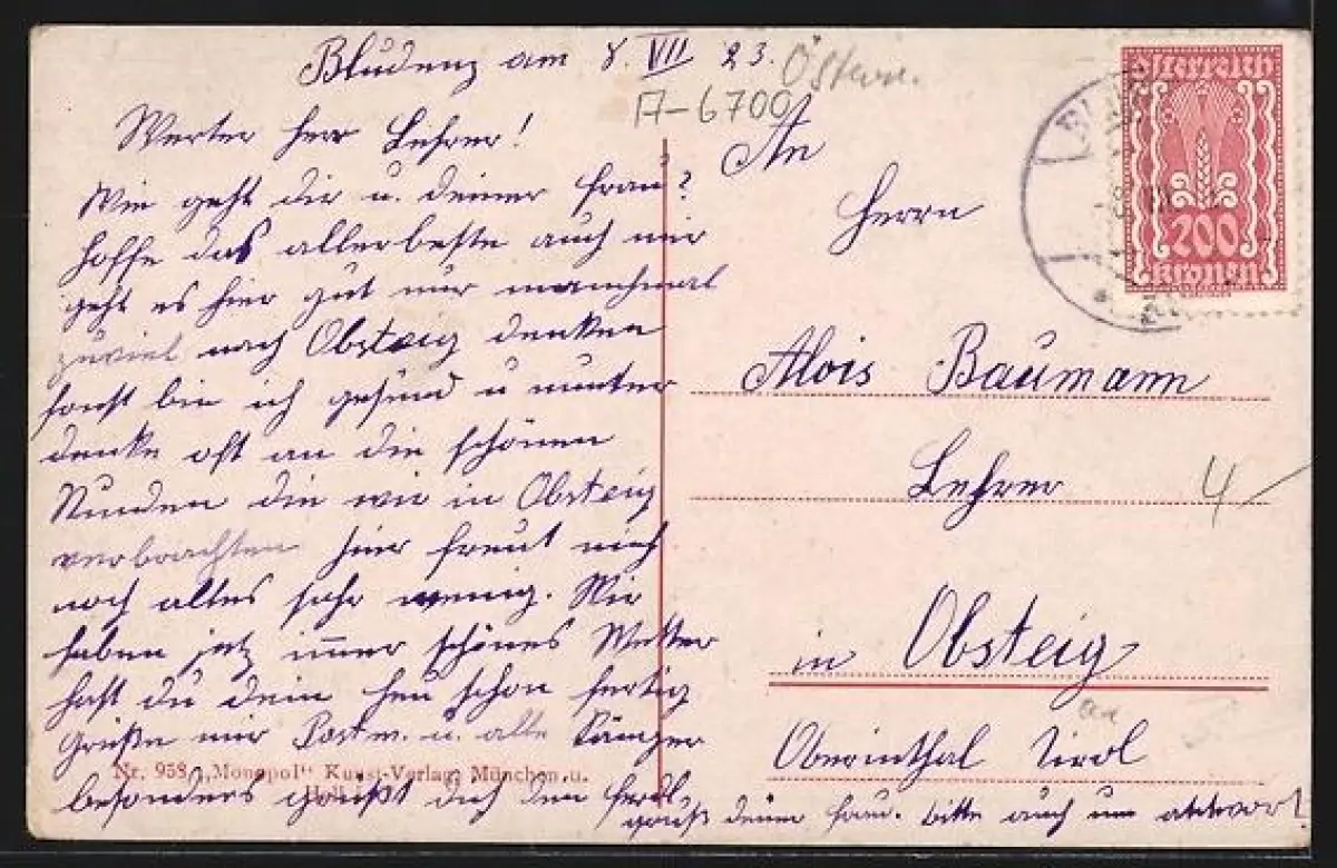 alte Ansichtskarte, gelaufen 1923, guter Zustand