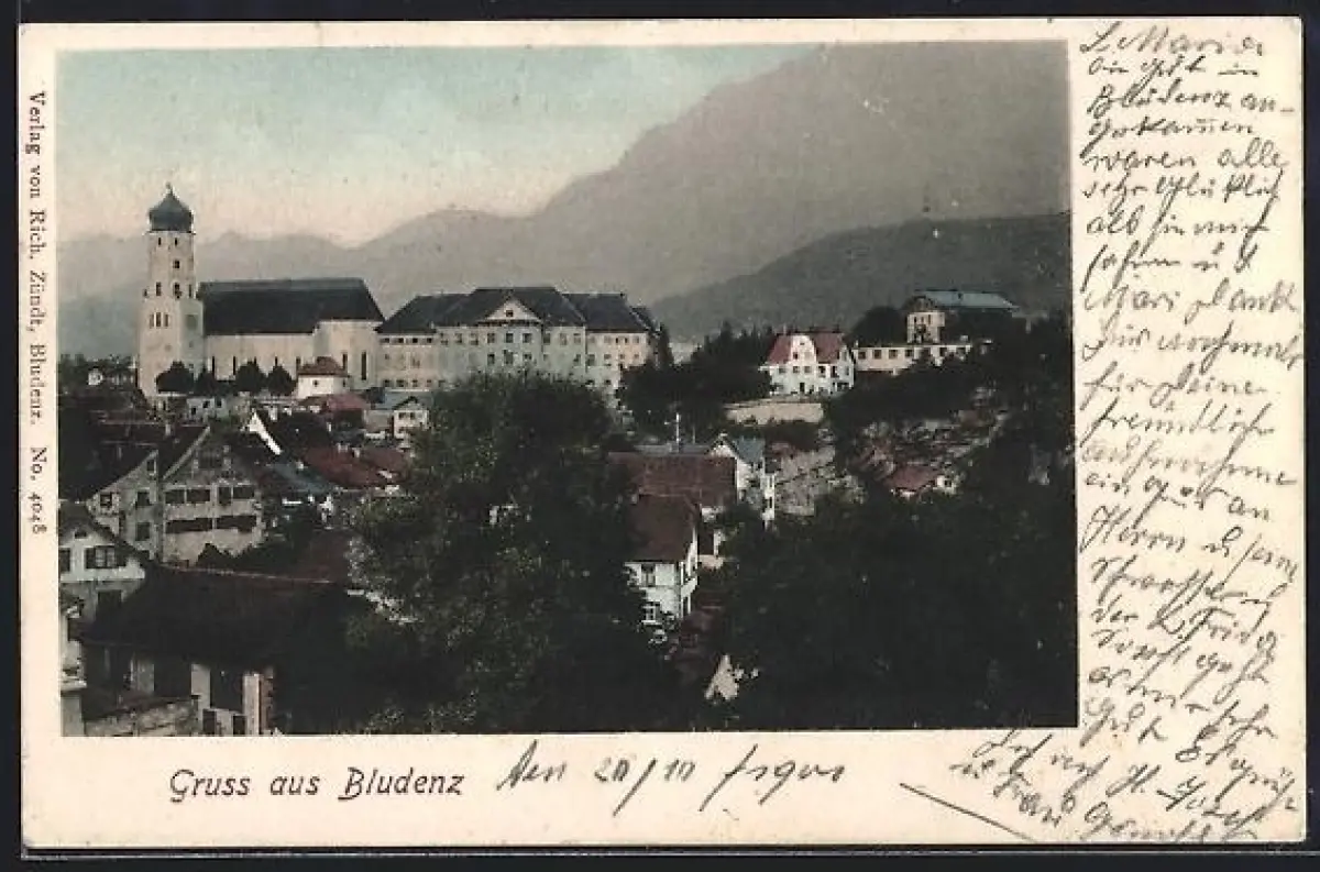 AK Bludenz, Ortspartie mit Kirche