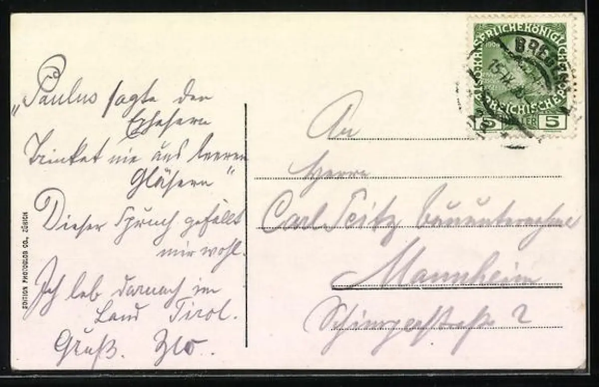 alte Ansichtskarte, gelaufen, Eckknick links unten, guter Zustand