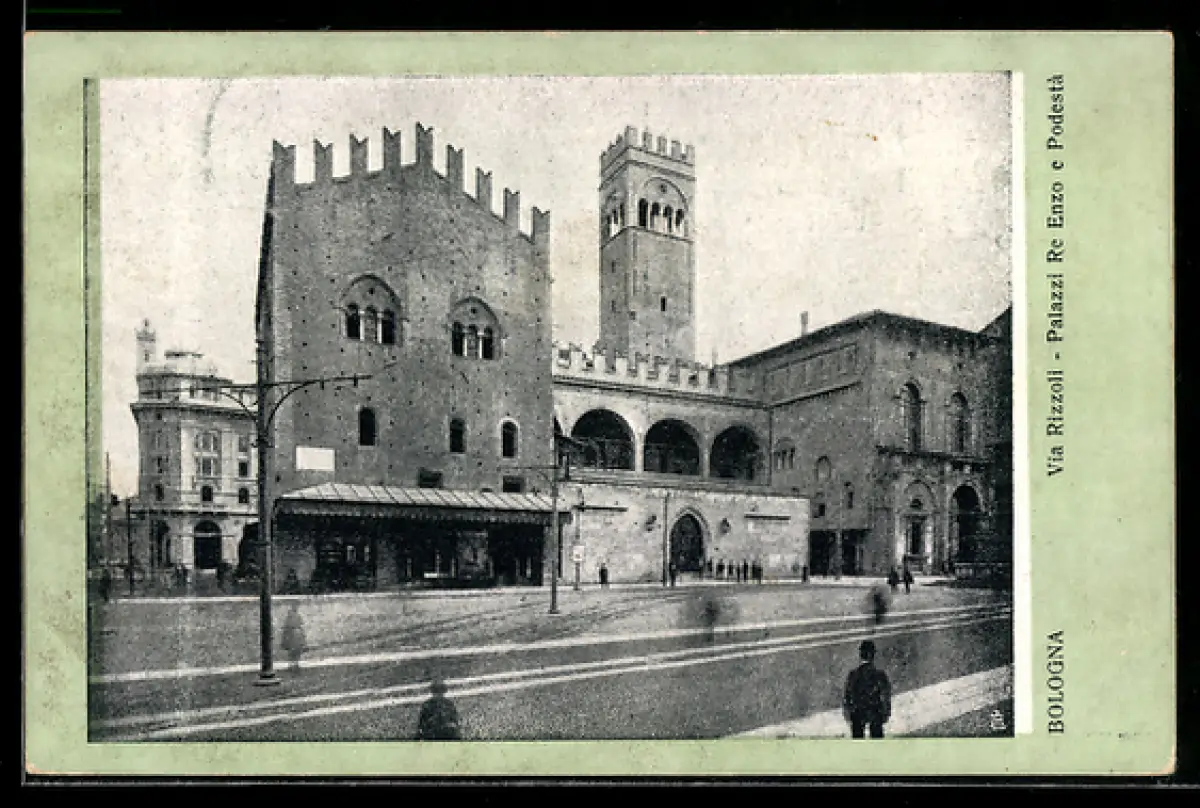 AK Bologna, Via Rizzoli, Palazzi R. Enzo e Podestà