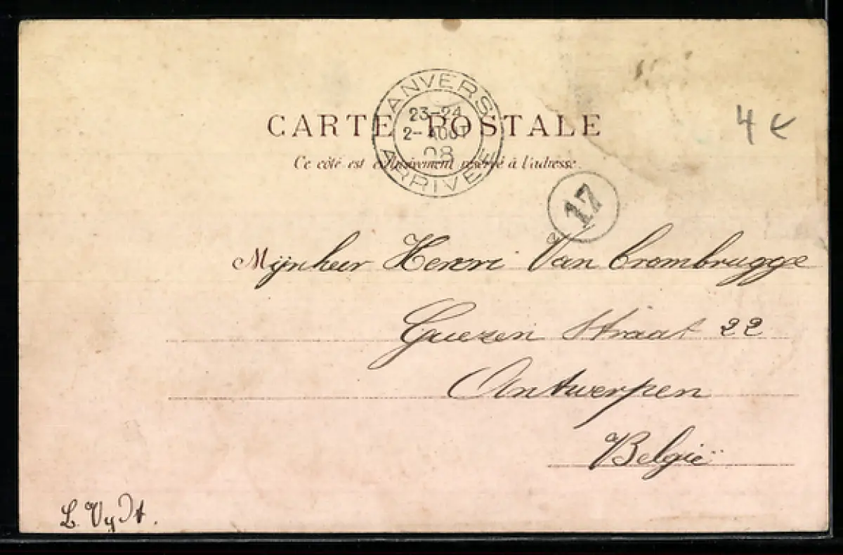 alte Ansichtskarte, gelaufen 1908, Briefmarke entfernt, rückseitig Oberflächenschäden, guter Zustand