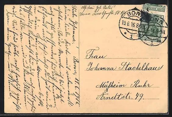 alte Ansichtskarte, gelaufen 1916, Eckknick oben re., guter Zustand