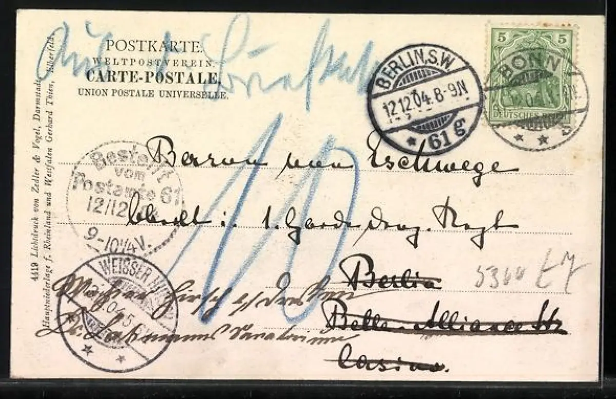 alte Ansichtskarte, gelaufen 1904, guter Zustand