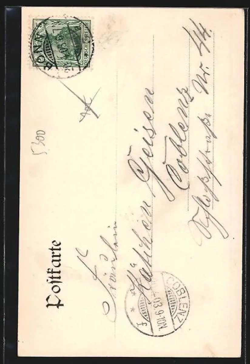 alte Ansichtskarte, gelaufen 1903, leichter Eckknick re. unten, guter Zustand