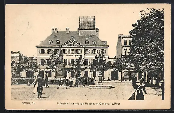AK Bonn /Rh., Münsterplatz mit van Beethoven-Denkmal und Post
