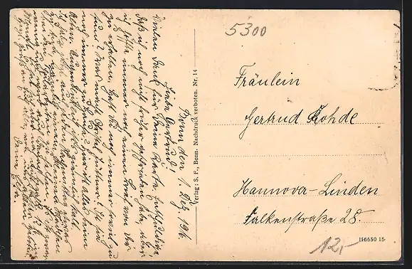 alte Ansichtskarte, gelaufen, Briefmarke entfernt, Eckknick li. oben, guter Zustand