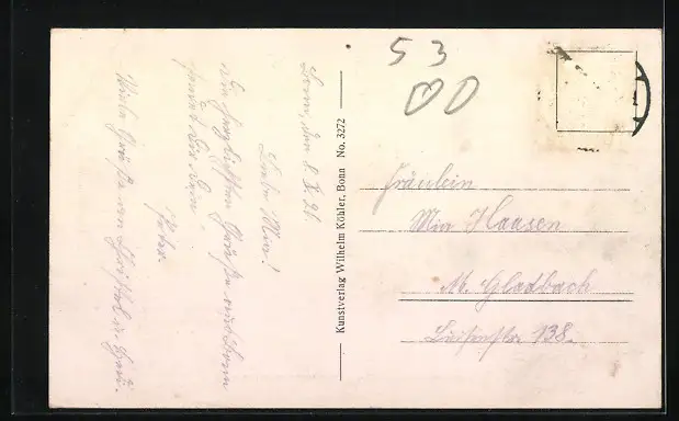 alte Ansichtskarte, gelaufen, Briefmarke entfernt, guter Zustand
