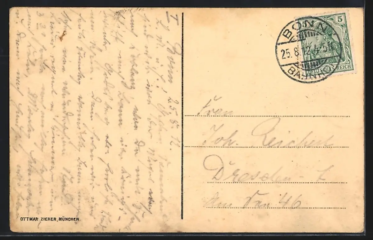 gelaufen 1912, Abriebspur oben mittig u. rechts, guter Zustand