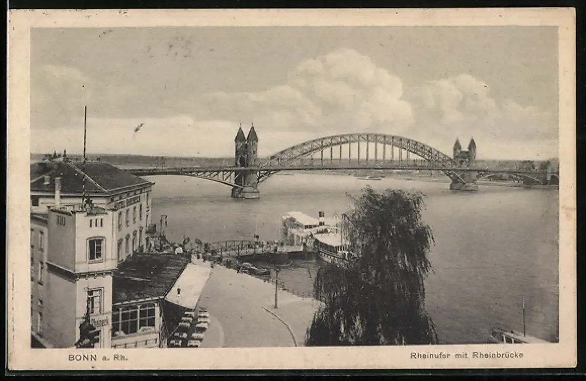 AK Bonn a. Rh., Rheinufer mit Rheinbrücke