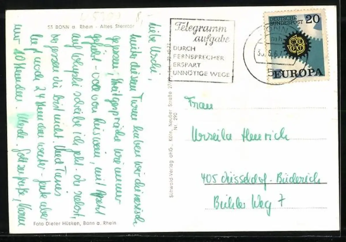 alte Ansichtskarte, gelaufen 1967, minimale Einrisse li. mittig, guter Zustand