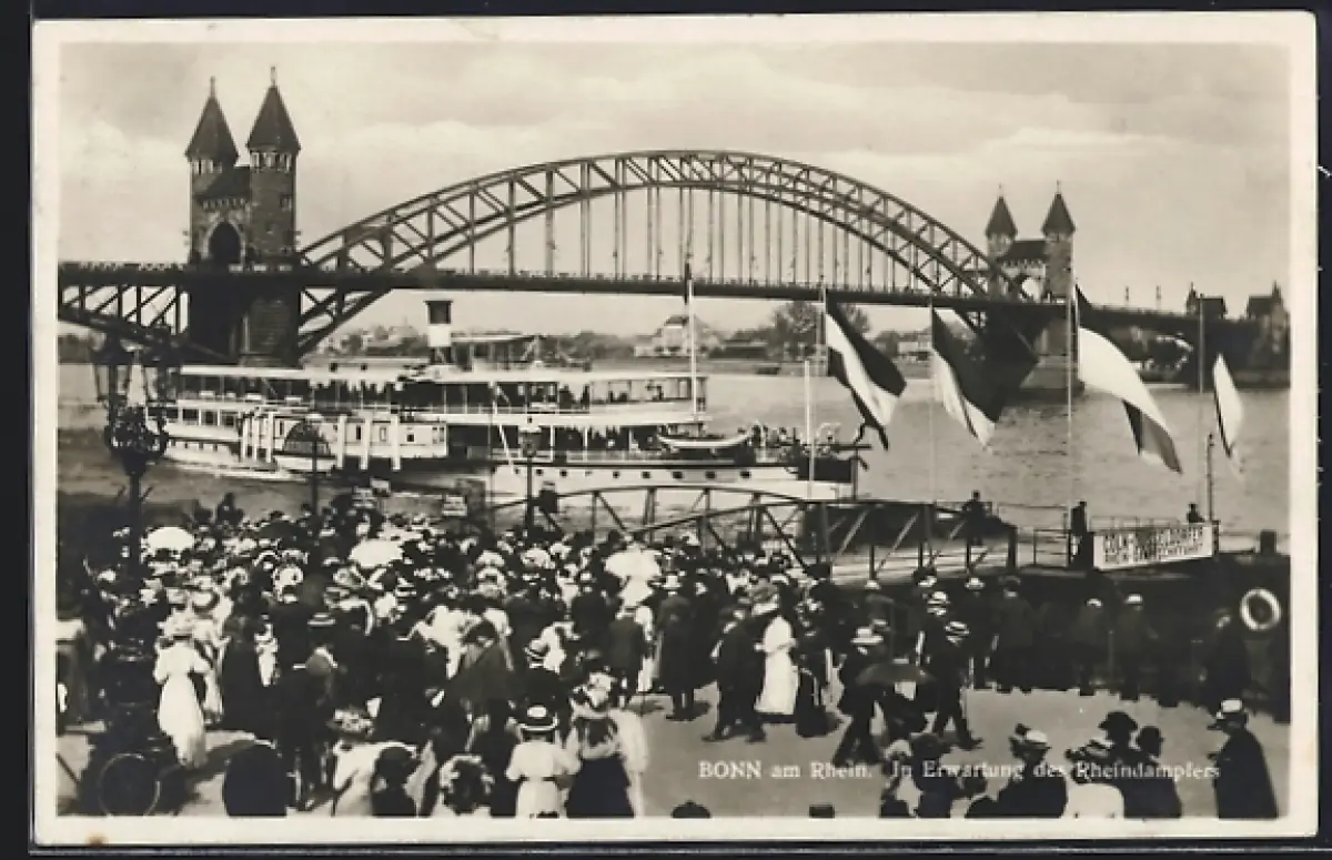 AK Bonn am Rhein, In Erwartung des Rheindampfers