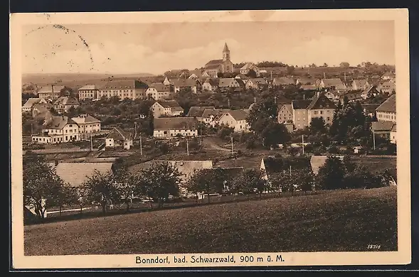 AK Bonndorf /Bad. Schwarzwald, Teilansicht mit Kirche