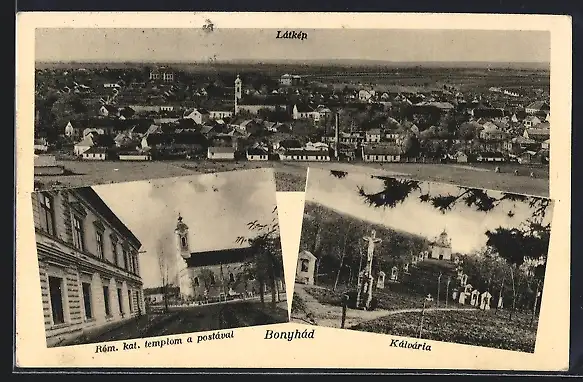 AK Bonyhád, Kalvaria, Rom. kat. templom a postaval