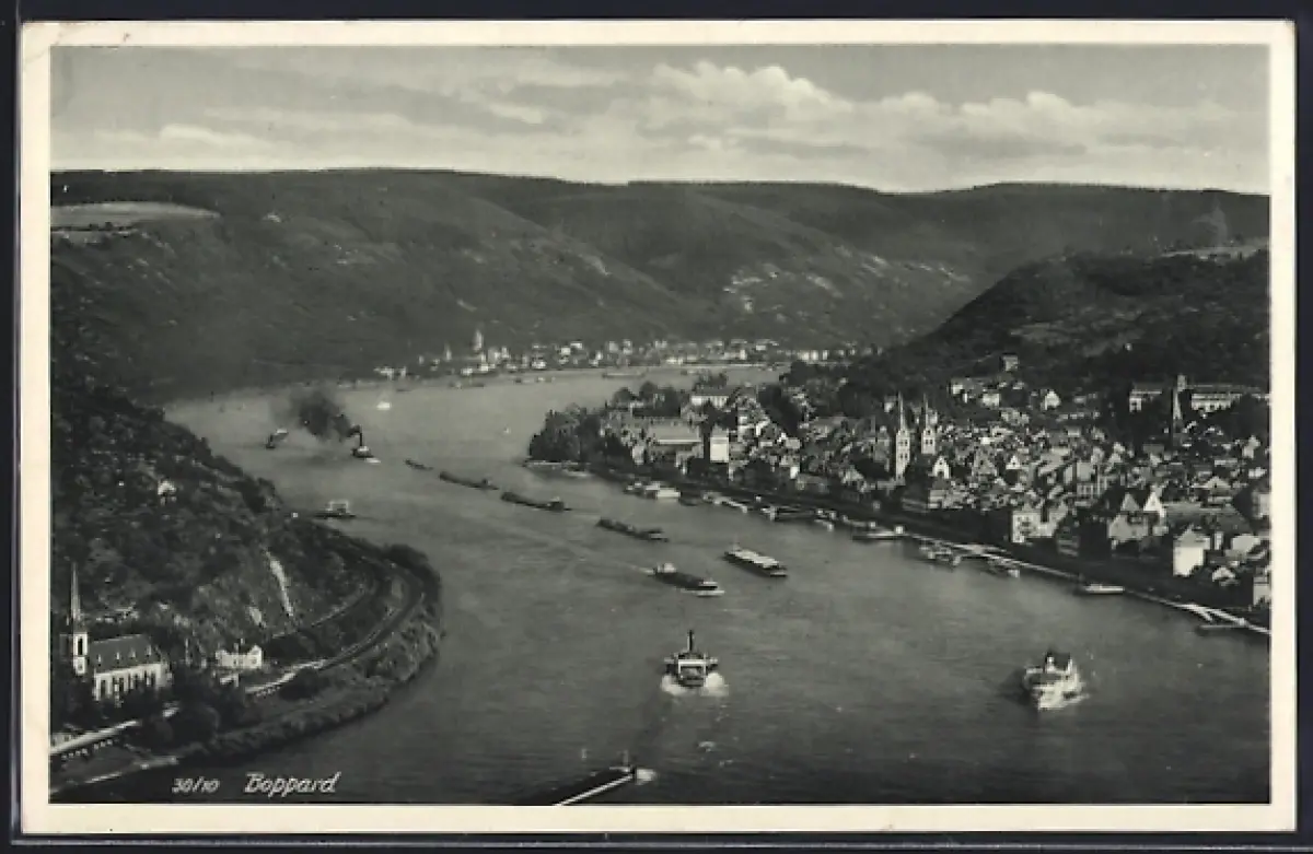 AK Boppard, Flusspartie aus der Vogelschau