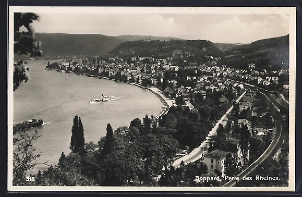 AK Boppard, Ortsansicht mit Rheinpanorama, Dampfer