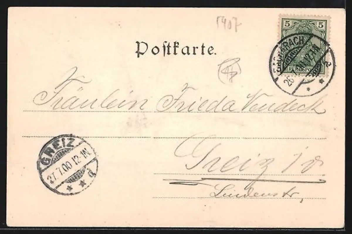 alte Ansichtskarte, gelaufen 1900, Stempelspur, guter Zustand