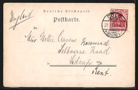 alte Ansichtskarte, gelaufen 1903, Eckknicke oben, Stempelspur, guter Zustand