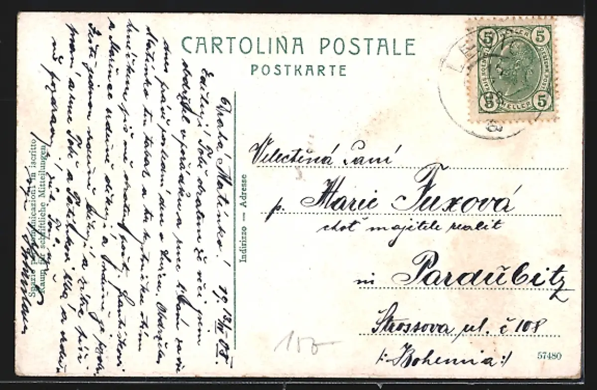 gelaufen 1908, Eckknick oben li., guter Zustand
