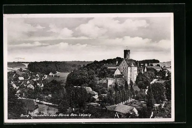 AK Borna, Burg Gnandstein mit, Teilansicht des Ortes