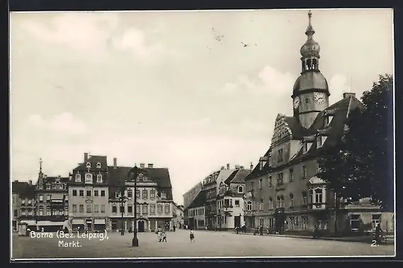 AK Borna / Sachsen, Der Marktplatz mit Kirche