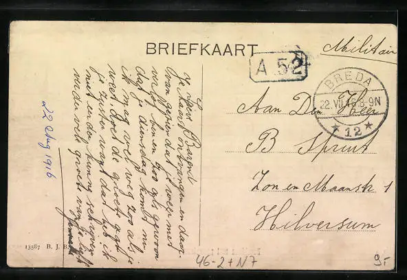 gelaufen 1916 als Feldpost, Eckknicke unten, guter Zustand