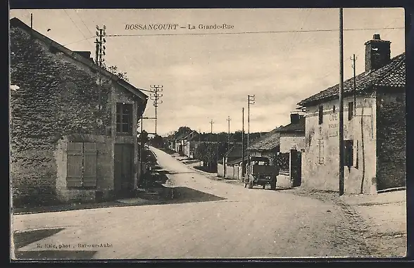 AK Bossancourt, La Grande-Rue avec charrette et bâtiments anciens