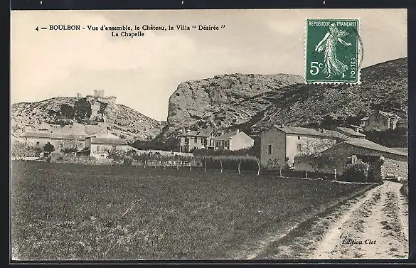 AK Boulbon, Vue d`ensemble: le Château, la Villa Désirée, la Chapelle
