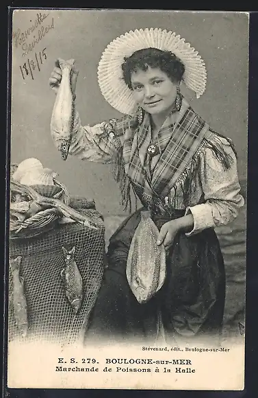 AK Boulogne-sur-Mer, Marchande de Poissons à la Halle, Fischhändler