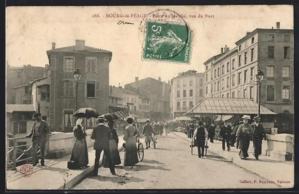 AK Bourg-de-Péage, Rue du Marché vue du Pont