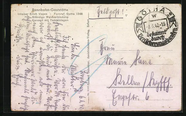 AK Boxberg-Gotha, Rennbahn-Gaststätte Inh. Erich Voges