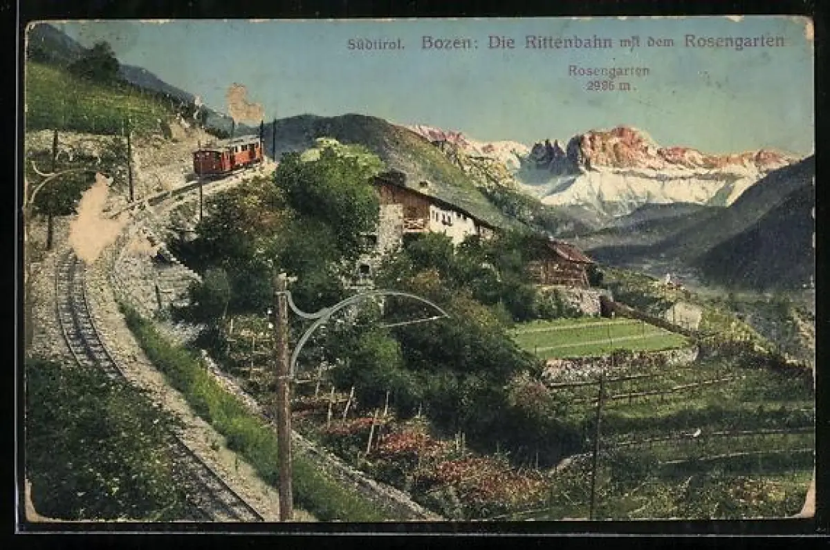 AK Bozen, Die Rittenbahn mit dem Rosengarten, Bergbahn