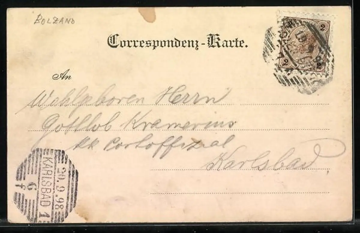 alte Ansichtskarte, gelaufen 1898, guter Zustand