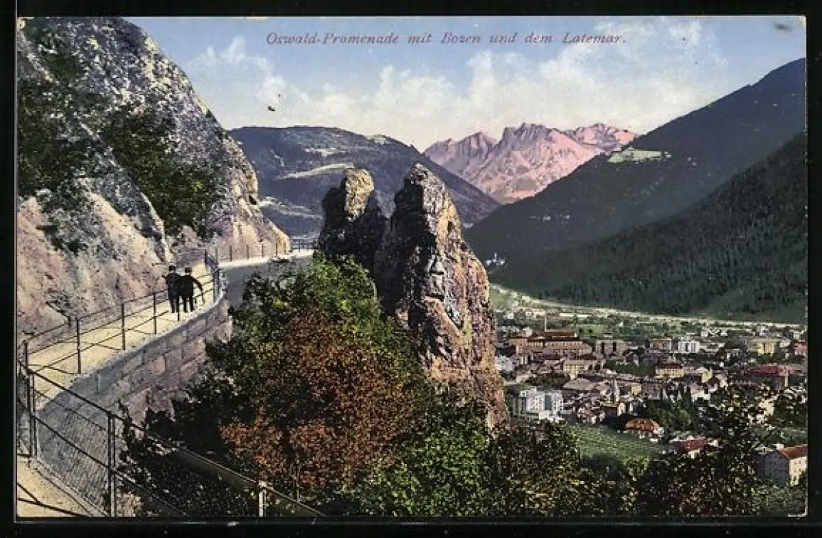 AK Bozen, Teilansicht mit Oswaldpromenade u. dem Latemar