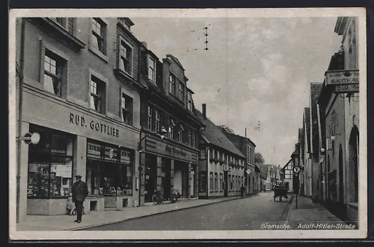 AK Bramsche, Strasse, Geschäft von Rud. Gottlieb
