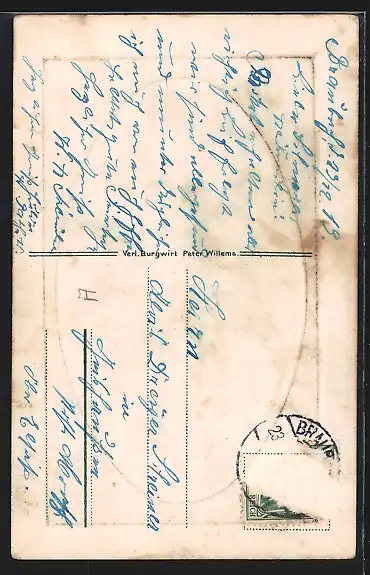 alte Ansichtskarte, gelaufen, Briefmarke entfernt, rückseitig Oberflächenschaden, Bugspur re. oben, guter Zustand