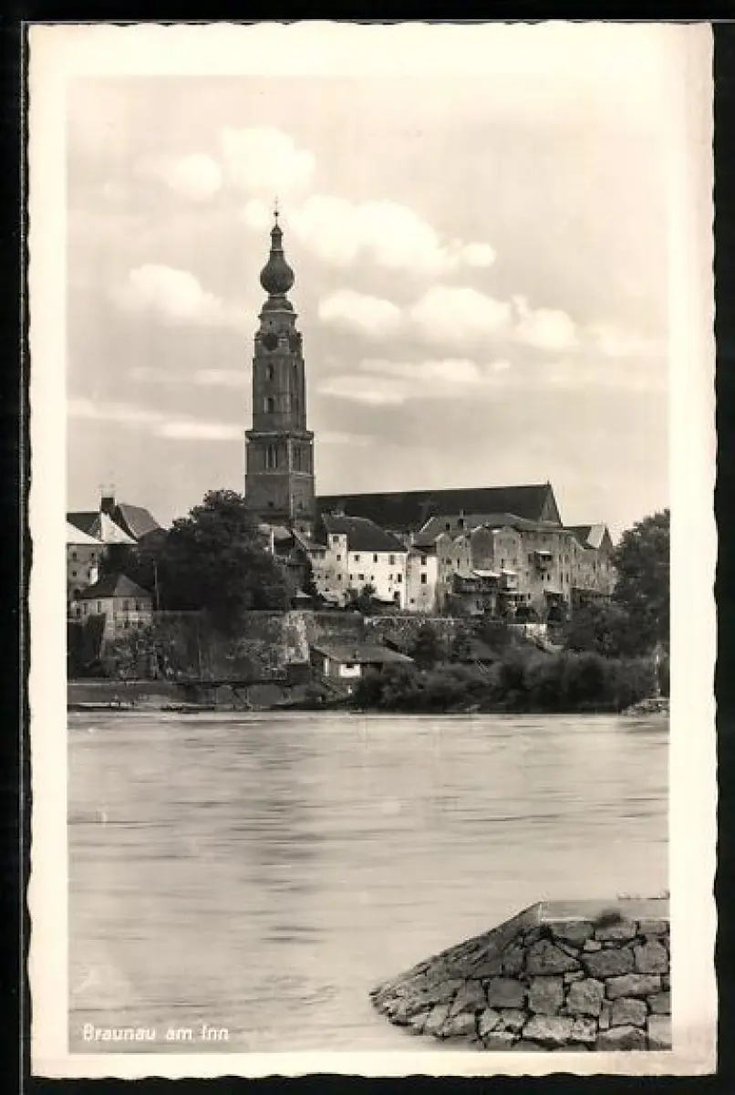 AK Braunau am Inn, Ortsansicht mit Kirche