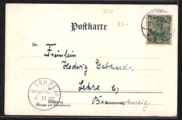 alte Ansichtskarte, gelaufen 1900, guter Zustand