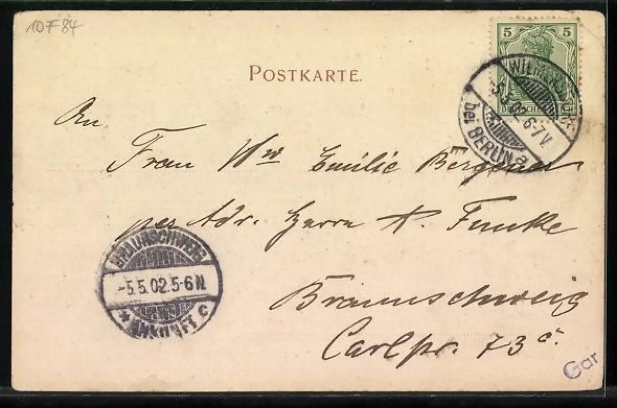 gelaufen 1902, Eckknick oben links, guter Zustand