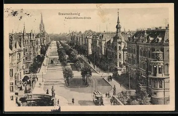 AK Braunschweig, Strassenbahn in der Kaiser-Wilhelm-Strasse