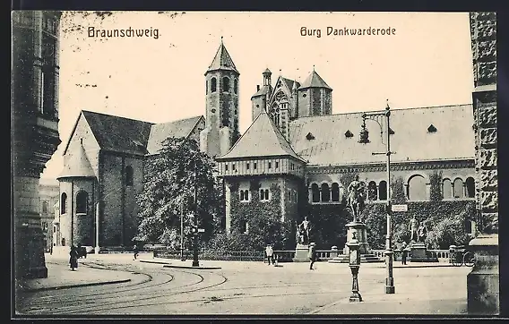 AK Braunschweig, Strassenpartie mit Burg Dankwarderode