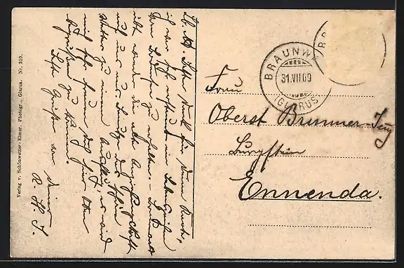 alte Ansichtskarte, gelaufen 1909, Briefmarke entfernt, guter Zustand