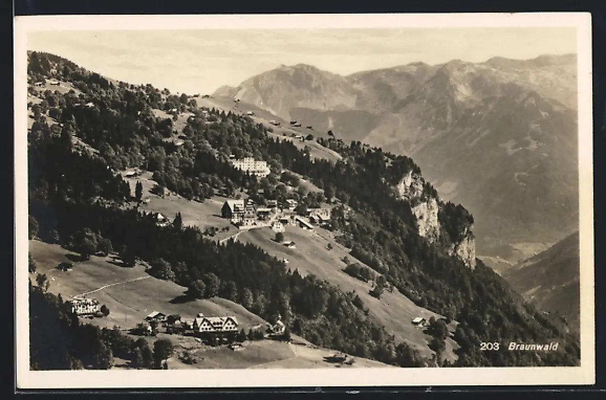 AK Braunwald, Ortsansicht aus der Vogelschau