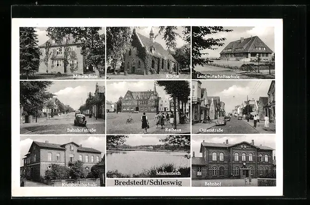 AK Bredstedt, Bahnhof, Rathaus und Mittelschule